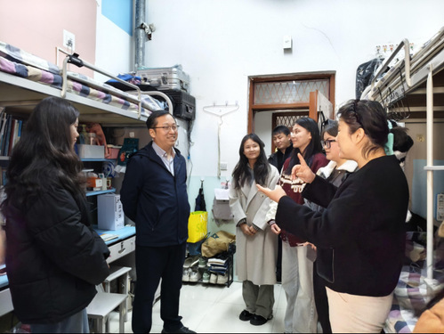 走访中,师生围坐一堂,老师们亲切询问大家节日安排和在校生活情况,特别叮嘱留校学生注意假期安全,合理规划时间,积极参与学院举办的民族文化体验活动和志愿服务,展现新时代青年团结奋进的精神风貌。老师们还为学生送上节日礼物,寄语大家“传承民族文化,争做民族团结的践行者”。