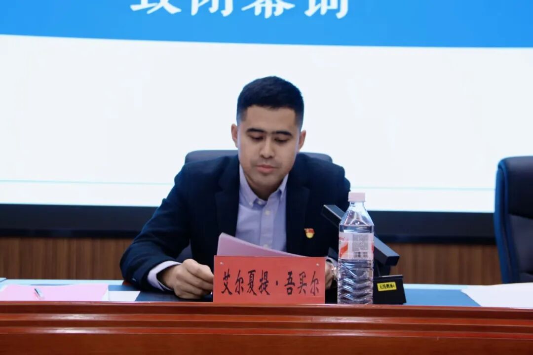 艾尔夏提·吾买尔向新一届委员表示祝贺并嘱托:“坚守初心不褪色,勇于担当敢作为,创新求索不止步,严于律己树标杆,愿你们永远年轻、永远热泪盈眶,用热爱与实干为学院发展注入青春力量!”